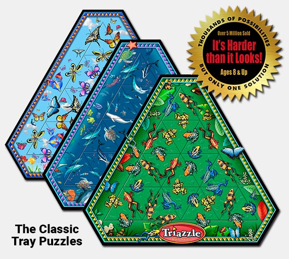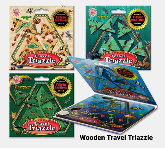 Since 1991 the Triazzle Brain Teaser has brought joy to millions of enthusiasts around the world. From grade school children to college graduates it offers a seemingly simple challenge . . . can you assemble the triangles with all pictures matching? It may look easy but Its "Harder Than It Looks!"